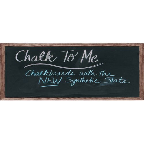 #This chalkboard with wood frame features a synthetic surface which provides traditional chalkboard legibility and can be written on and cleaned over 20, 000 times. This chalkboard includes white chalk and a sample "liquid chalk" marker.