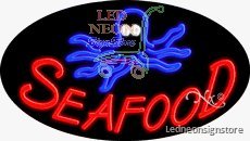 Seafood Neon Sign 17 inch tall x 30 inch wide x 3.5"0 inch wide x 3.5 inch deep outdoor only with outdoor box for use under regular weather made in USA