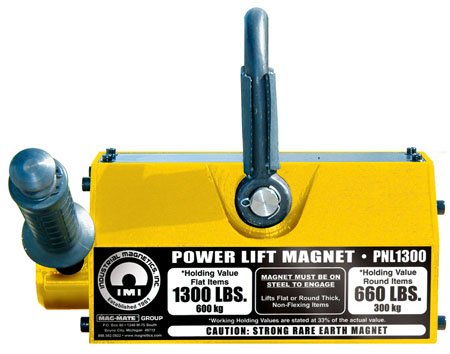 Lifting capacity=1,300 lbs. Flat section (1/2 x 4' x 8'), 660 lbs. Round section (4" dia.), Powerlift Magnet (1 Each)
