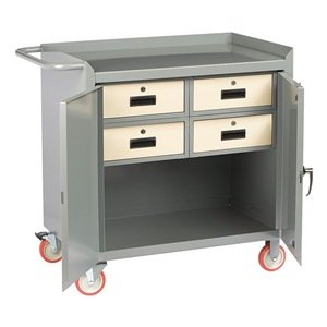 Little Giant MC2D2436-4DRTL Steel Mobile Bench Cabinet with 4 Drawers and 2 Doors, Gray, 1200 lbs Load Capacity, 38" Height x 24" Width x 36" Length