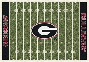 #NCAA Team Rugs GEORGIA BULLDOGS HOME FIELD R Size: 10'9" X 13'2". . Style# S280 Shape:Rectangle. Color/Pattern# is 533319-1080. SKU: MKRUG-533319-1080. Color Name/Item is Georgia Bulldogs (End Zone Color: Black). Construction is 100% Stainmaster Pile Fiber.