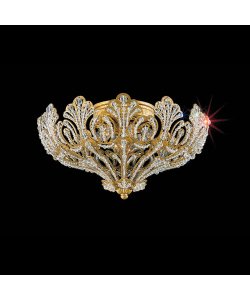 #Crystal:Clear Swarovski Elements, Finish:Heirloom Silver, Light Bulb:(6)40w G16 Cand C Incand Rivendell 6 Light Semi Flush Mount Rough metalwork is embedded with tiny crystal jewels to create organic shapes and motifs from nature. There is a great deal of handwork in Rivendell. That and the originality of design make it highly collectible. Schonbek products and prices shown are valid for North American customers and shipments (110v) only.