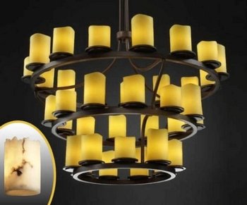 Justice Design FAL-8713-10-MBLK Dakota 36-Light 3-Tier Ring Chandelier (Inverted)?The LumenAria Collection offers the look of genuine carved alabaster without the cost. These faux alabaster fixtures combine many of your favorite shapes with the warmth and beauty of an alabaster glow. • Supplemental mounting support required independent of j-box • Approximate fixture weight: 200 lbs.
