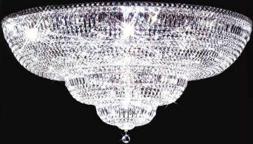 Features21" high X 48" wideTakes 60 watt candelabra bulbsSilver finishImperial Crystal (high quality crystal from sources in Europe and the Middle East) Prestige Thirty Light Crystal Flush Mount Ceiling Light by James R. Moder?