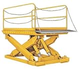 | ✚✚✚ Beacon BSLD Series Heavy Capacity Scissor Dock Lift ; Travel: 60"; Cap Lbs: 30000; Platform Standard: 72 x 120; Base: 63 x 112; Lowered Height (inches): 24; Raised Height (inches): 84; Approx Up Speed: 5; Motor HP: 7.5; Cylinders: 3; Axle Load Ends: 24500; Axle Load Sides: 21500; Model# BSLD-300-610 The Beacon heavy capacity scissor loading dock lift is ideal for lifting heavy objects. This hydraulic loading dock lift has a safety tread steel plate platform with 8" beveled toe guards and yellow and black safety strips. This scissor dock loading leveler features 2 removable steel handrails, positive stops on all 4 corners and hinged safety restraint maintenance bars. The hydraulic lift also features a safety velocity fuse at the base of each cylinder. The unit also has 4 safety chains with snap hooks.