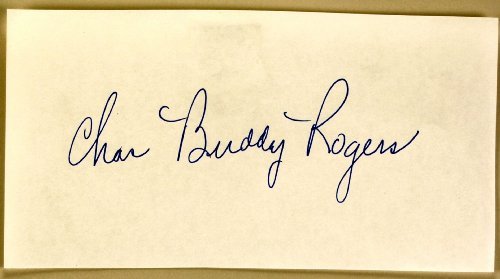 Charles "Buddy" Rogers Autograph - Signed 3.5x6.6 Paper Cut - Signed in Ballpoint Pen - Married to Mary Pickford - Films: Wings / Mexican Spitfire's Baby / Varsity - Rare - Collectible?Charles Buddy Rogers Autograph - Signed in Ballpoint Pen - Signed late in life - 3.5x6.5 Paper cut - Husband of Mary Pickford - His Films Include: 1926 - Fasinating Youth / 1927 - Wings / 1928 - Varsity / 1929 - Illusion / 1930 - Young Eagles / 1930 - Follow Thru / 1931 - Slippery Pearls / 1931 - Road to Reno / 1931 - Working Girls / 1933 - Best of Enemies / 1935 - Old Man Rhythm / 1941 - Golden Hoofs / 1941 - Mexican Spitfire's Baby / 1948 - An Innocent Affair - Rare - Collectible