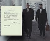 LBJ hopes his Defense Sec'y can get from "your Service Secretaries and Joint Chiefs their fullest cooperation in reaching your objective..."Knowing "how hard you are working to pare Service requests," LBJ hopes his Defense Sec'y can get from "your Service Secretaries and Joint Chiefs their fullest cooperation in reaching your objective..." Typed Letter Signed "Lyndon B. Johnson as President, 1p, 7" x 10.25". The White House, Washington, December 2, 1966. To his Secretary of Defense Robert S. McNamara. Receipt stamping on verso shows through in upper blank area. Fine condition. In full, "The attached letter [not present] from me to you is, I think, self-explanatory. I am anxious to do everything in my power to minimize Federal spending this year and next. You know about the $5 billion cutback in Federal programs I just announced. In turn, I know how hard you are working to pare Service requests, both for the 1967 supplemental and the 1968 budget. I wrote the attached letter so that you could use it with your Service Secretaries and Joint Chiefs to get their fullest cooperation in reaching your objective." From the Estate of Robert S. McNamara, JFK and LBJ's Secretary of Defense from 1961-1968. ... Edited for formatting purposes. More information is always available.