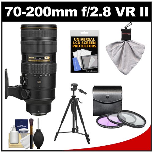 Nikon 70-200mm f/2.8G VR II AF-S ED-IF Zoom-Nikkor Lens with 3 UV/FLD/CPL Filters + Tripod + Accessory Kit for Nikon D3100, D3200, D5100, D7000, D600, D800, D4 Digital SLR Cameras