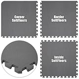 | ✚✚✚ Floor Pad, SoftFloors, Grey, 14' x 30' Set, Total Sq. Ft.:420 Floor Pad, SoftFloors, Grey, 14' x 30' Set, Total Sq. Ft.:420The most comfortable and affordable flooring you can buy for Residential or Commercial or Industrial applications. SoftFloors are a closed cell EVA Foam Rubber that is Lighweight, Portable, Waterproof, Soundproof, Aerobic, Shock Absorbent, Insulating, etc. Components: Corner: 4, Border: 36, Inside: 65 Packaging information: Total Pieces: 105, Total Cartons: 5, Full Cartons (25 pcs): 4, Full Carton Weight (lbs.): 31.25, Partial Carton (Total Pieces): 5, Partial Carton (Product photo may not exactly match the product offered for sale. Please refer to the product description.
