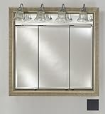 Afina Corporation TD-LT3434RCOLBK 34 in.x 34 in.Recessed Triple Door Cabinet with Traditional Lights - Colorgrain Black