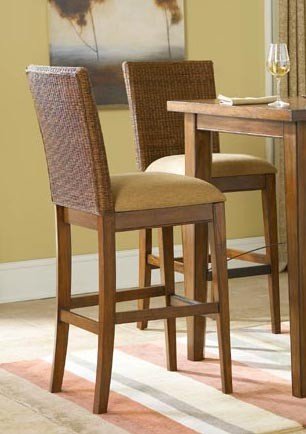Set of 2 30"H Stools with Paper Loom Back in Dark Brown Mahogany Finish, specifications, descriptions, pricing updates and more desirable for this product!