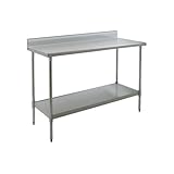 | ✚✚✚ Eagle (T3036SEB-BS) 36" x 30" Worktable w/ Backsplash Eagle (T3036SEB-BS) 36" x 30" Worktable w/ Backsplash Commercial kitchens can always use more space for prepping food, plating food or even to sort out deliveries. The 36" x 30" Worktable w/ Backsplash (T3036SEB-BS) from Eagle is the ideal way to create more work space in any kitchen. The adjustable undershelf on this worktable allows for increased and flexible product storage. Constructed from durable stainless steel, this model is designed to withstand the rigors of tough commercial foodservice environments and features a backsplash to help keep items on the table. Increase productivity in your commercial kitchen with the addition of a stainless steel worktable with backsplash.FeaturesHeavy-gauge adjustable undershelfMarine counter edge on front and ends4 1/2" backsplash (Not included in table height)Stainless steel legs with 1" adjustable, high-impact plastic feetBenefitsPolished,