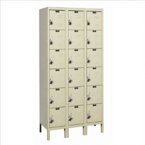 Hallowell Ready-Built URB3228-6A-PT Parchment Steel Box Locker, 3 Wide with 18 Opening, 6 Tier, 36" Width x 78" Height x 12" Depth, Assembled?Fully-Assembled and ready to use right out of the box! Ready-Built lockers ship complete with a master-keyed controlled combination padlock for each locker door so lockers are ready to use the minute they arrive. Our multi-point gravity lift-type latching for wardrobe lockers assures a secure locker while box lockers offer a simple thru-the-door finger pull single-point latch. All doors are louvered for ventilation and include a continuous piano hinge to insure a worry-free door operation. Wardobe doors include a stainless steel recessed handle allowing the included padlock to sit fully-recessed into the door for added safety while reducing vandalism and improving overall locker appearance. Wardrobe lockers allow for larger personal storage while box lockers are perfect for storing of smaller personal items. Order 3-wide units for best value and order 1-wide units where needed to complete your layout. Lockers ship fully-assembled. Choose from three great color choices: Parchment, Hallowell Gray or Marine Blue.